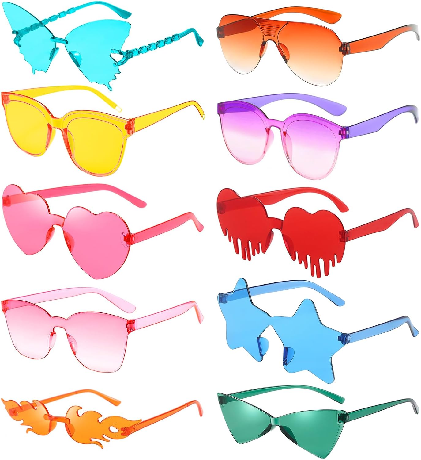 10/14 Pack Fun Party Sunglasses Bulk, Mixed Rimless Colorful Party Glasses Photoshoot Prop Costume Accessories Eyewear