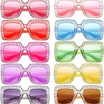 10/20 Pack Crystal Oversized Square Sunglasses Retro Diamond Glitter Sparkling Disco Glasses Party Favors