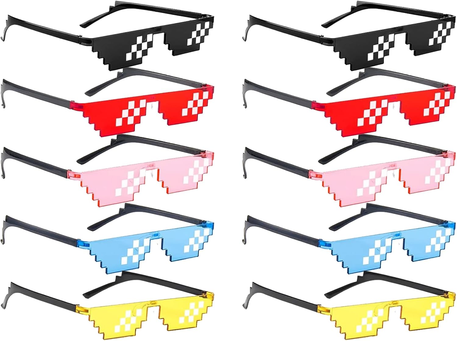 - Material: The assorted colors 8 bits glasses are made of high-quality plastic.The sturdy hinges and frame make these mosaic party sunglasses resistant to damage and durable.