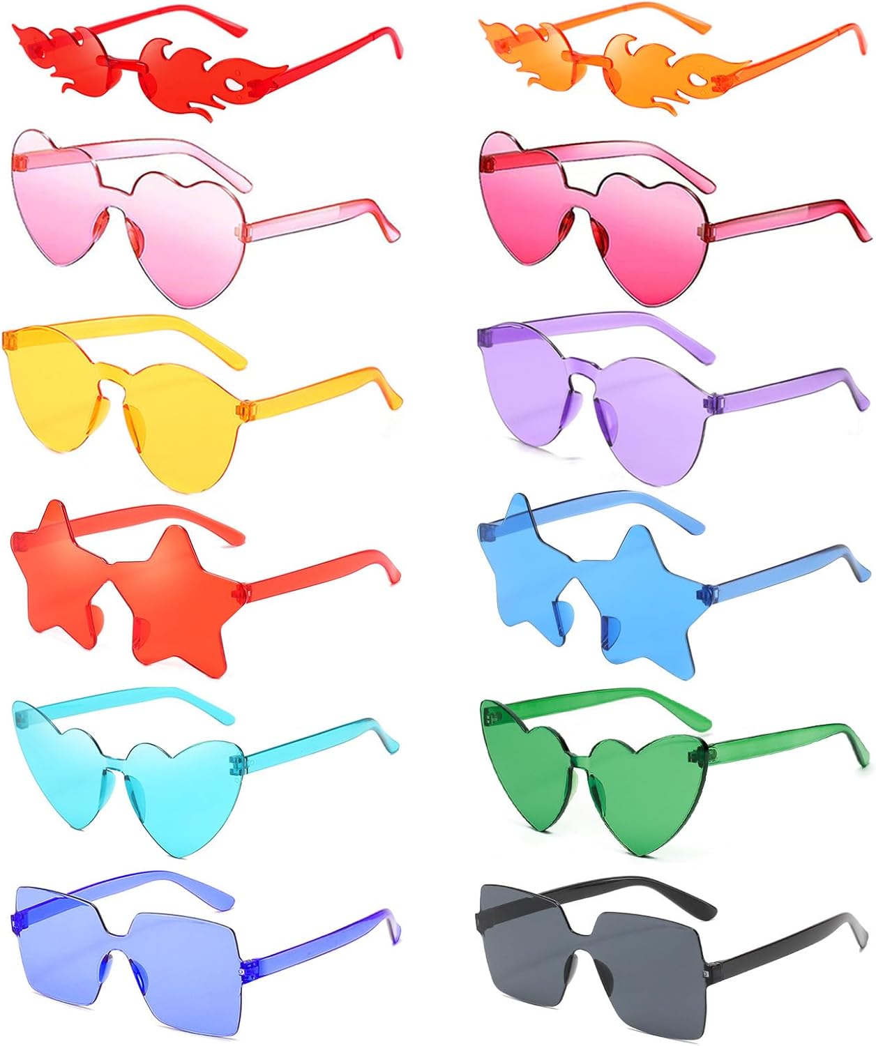 12/24 Pack Fun Mixed Rimless Party Glasses Bulk, Colorful Funny Sunglasses Set for Bachelor Party Favors