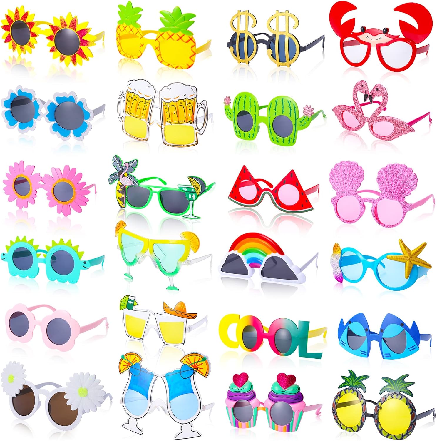 - Hawaiian Element Design: the tropical party sunglasses feature multi colored frames, and are designed like pineapple, cactus, daisies, swans, swans, coconut trees, cr and other classical Hawaiian patterns; They can be applied to matched with other summer clothes accessories, add cheerful festive vibes