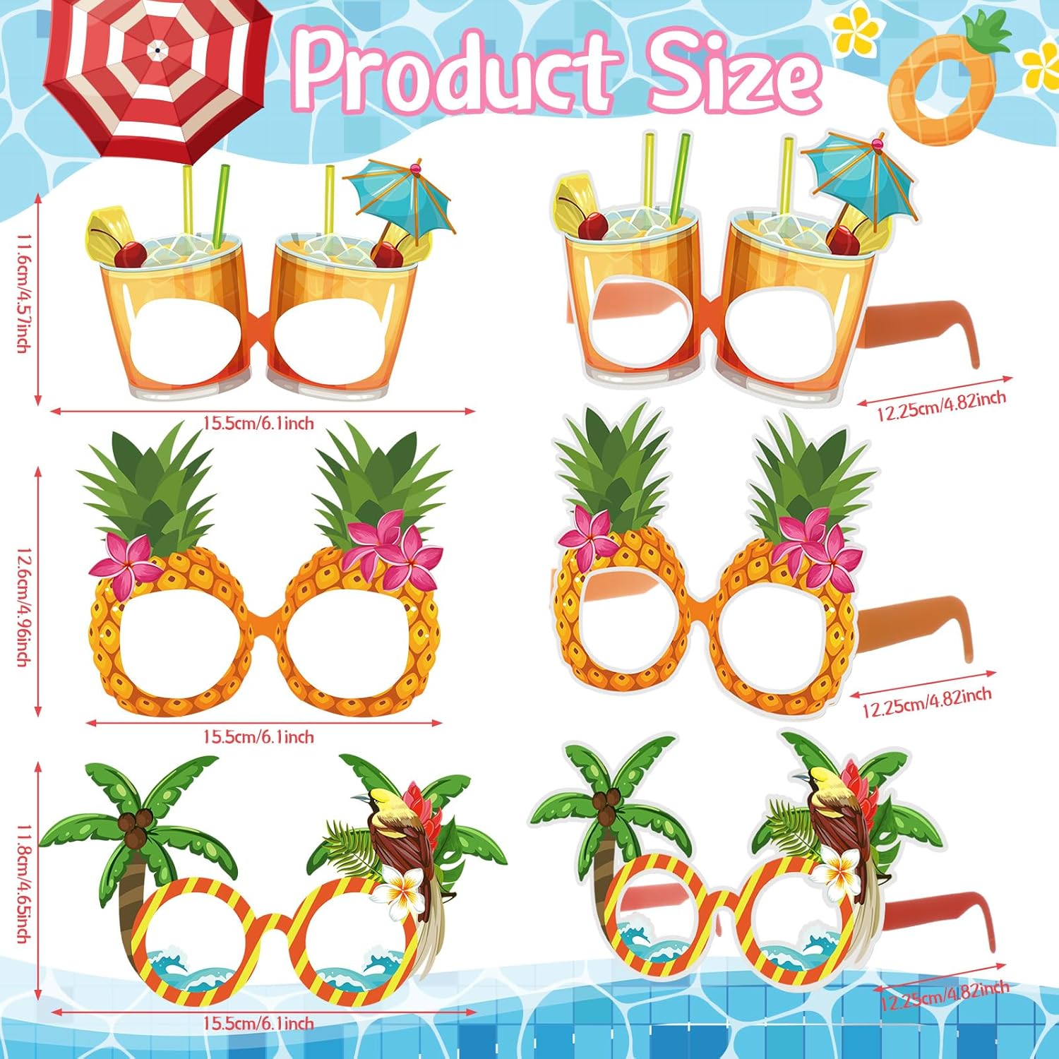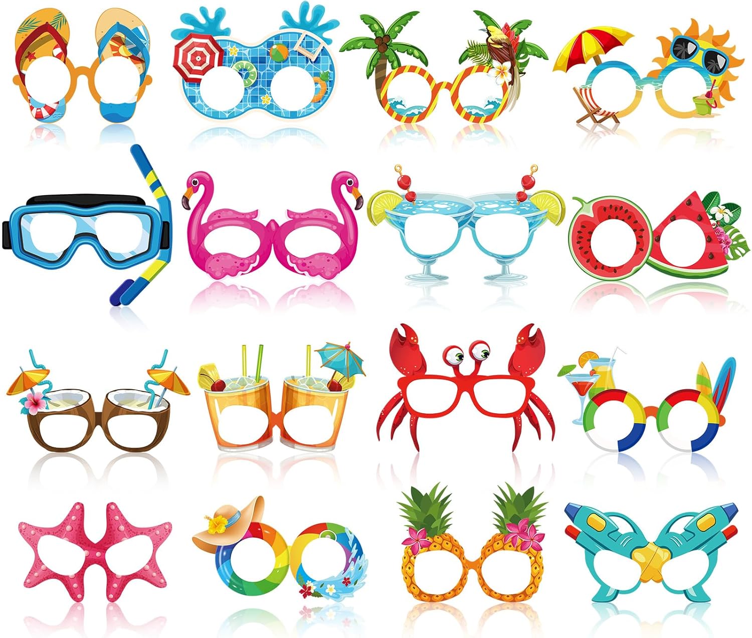 32 Pcs Beach Pool Party Eyeglasses Decoration Summer Luau Paper Glasses Bulk Funny Hawaiian Sunglasses Frame Tropical Pool Props Photo Booth Props for Luau Summer Beach Party Favors Supplies